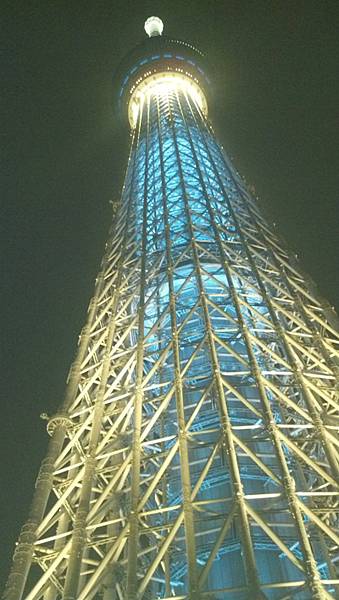 晴空塔夜晚的點燈,這天是有點藍綠色的聖誕樹。